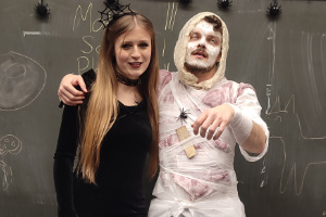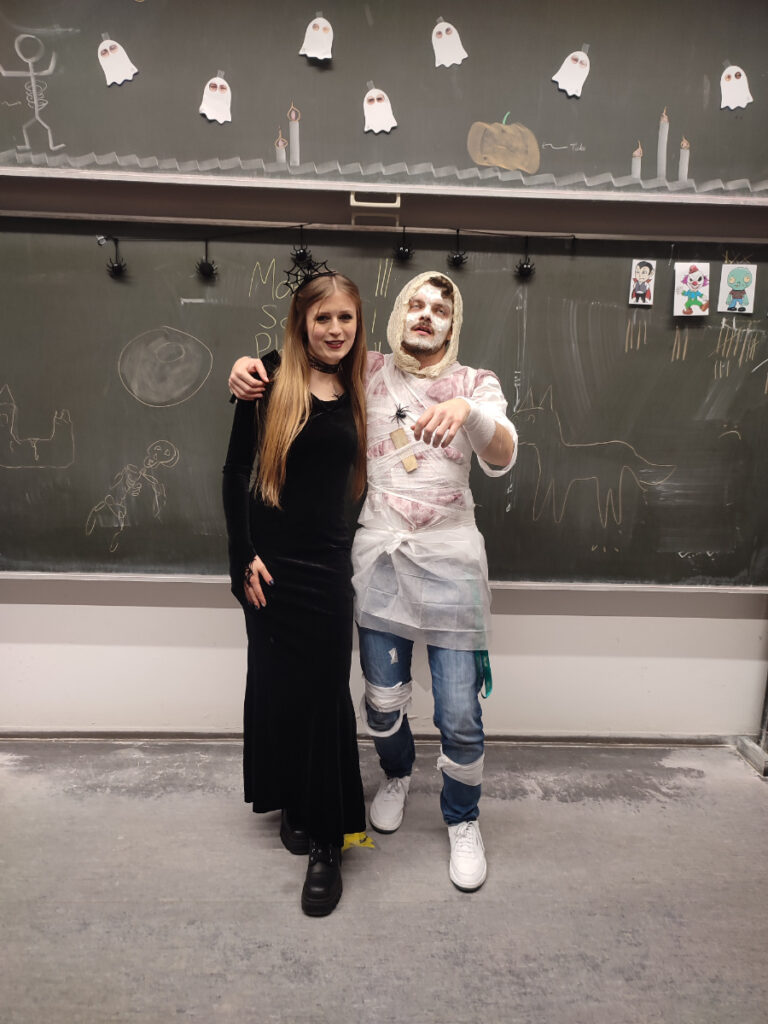 This year´s scary spooktober was organized by Anna-Sophie, the Spider Lady, and Lukas, the Mummy. In the haunted seminar room all kind of creepy creatures came together. Creepy clowns, wild witches, wise wizards, vicious vampires, mouldering mummies were scared by the possessed priests, judgmental jedi, tyranning T-Rex and petrifying pumpkin! Strengthened with damned delicious sweets our ghosty groups competed in different horrific games.