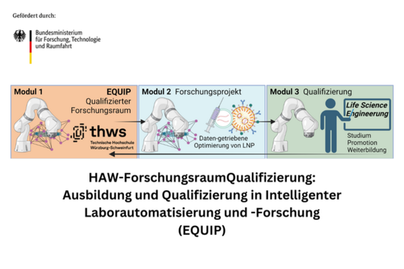 The EQUIP research facility at the Technical University of Würzburg-Schweinfurt (THWS), Institute for Medical Technology Schweinfurt (IMES) is an automated laboratory for processes in the field of life science engineering. We are delighted to be working with THWS and Fraunhofer ISC in Würzburg as part of the IDEAL cooperation program to automatically produce lipid-based nanoparticles as a transport system for active substances in the human body, using the skin and blood-brain barrier as examples. The data obtained from particle production, analysis, and specificity testing will be analyzed using active learning methods to identify correlations and enable predictions for particle optimization. The research project thus represents a concept for a preclinical development platform for the targeted optimization of lipid-based nanoparticles. The use of tissue models reduces the need for animal studies.