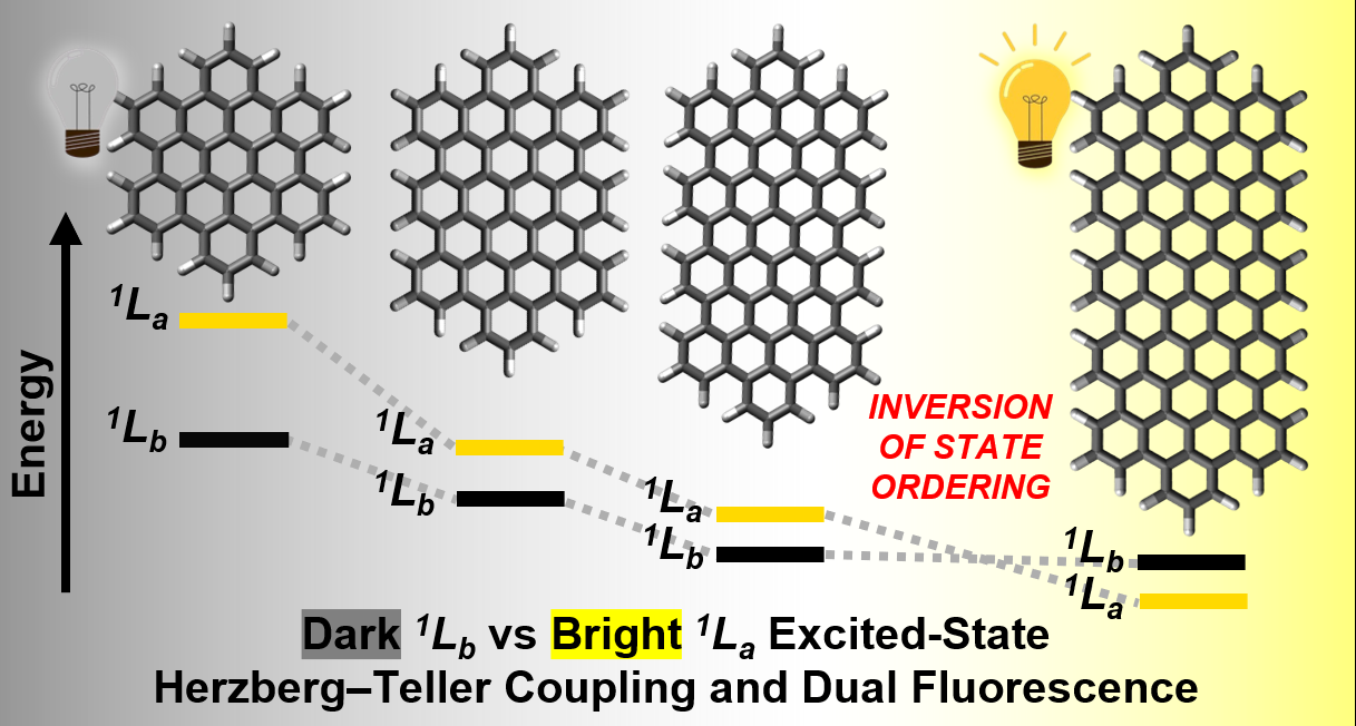 Overall, these results demonstrate the presence of strong vibronic effects in extended carbon architectures and provide compelling evidence of how the length and size of nanographenes and graphene nanoribbons critically influence their photophysical properties, thereby uncovering fundamental structure–property relationships. This knowledge enables the rational design of tailored molecular systems for applications in areas such as single-electron transistors, organic light-emitting diodes (OLEDs), and organic solar cells.