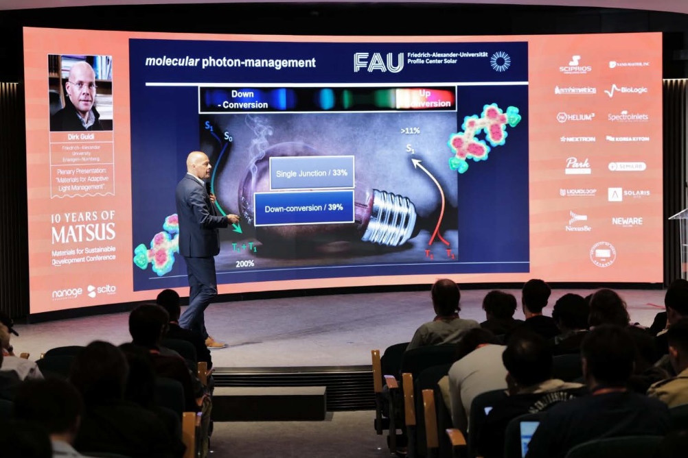 Dirk M. Guldi, Professor at Friedrich-Alexander-Universität Erlangen-Nürnberg (FAU) and Spokesperson of FAU Solar, delivered a plenary lecture at the international conference MATSUS 2026, held in Barcelona, Spain, from March 23–27, 2026. As a leading expert in the field of functional carbon-rich materials and photophysical processes, Guldi was invited to present his latest research on “Materials for Adaptive Light Management.”