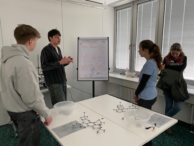 31.03.2026 Today we held the “Day of the open Lab” for pupils at our department! The Dube group contributed with the “Nano-World” experience, where we showcase molecular switches and machines to highlight how chemistry makes nanotech. We installed different stations showing the whole research workflow from in-silico design, to synthesis, analysis and visualisation by 3D printing, to applications in invisibly written 3D displays and 2D photographs for selfie-opportunities. A day filled with science and joy!! Big thanks to Lilli, Dipti, David, Nico, Sven, Elias, and Alex!
