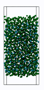 Metal alloys containing gallium with a small addition of active metals like platinum are liquid at temperatures relevant for industrial catalysis and have beneficial properties. The animation shows a machine-learned force field simulation of a gallium-platinum alloy and the real-time formation of a crystalline gallium-platinum intermetallic compound (Ga2Pt), also visible in experimental measurements.