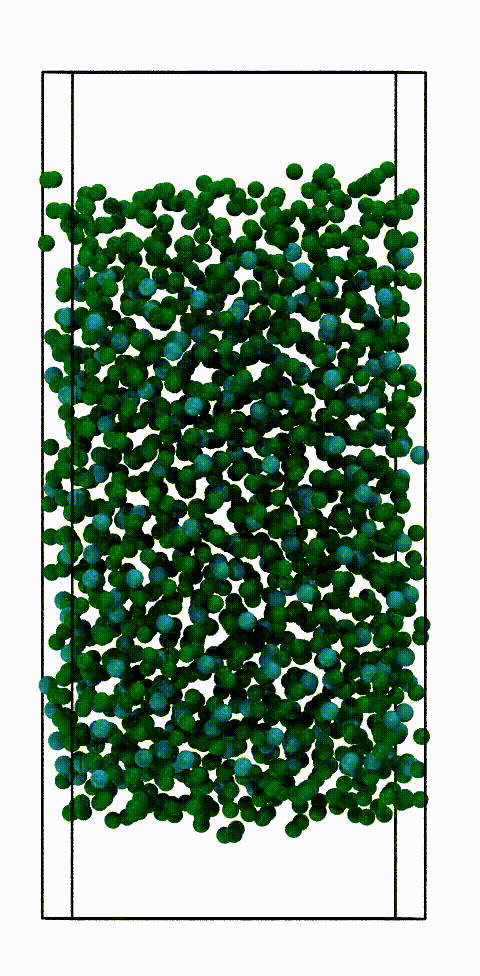 The animation stems from a molecular dynamics simulation of the self-organization process featuring ”molecular recognition“ of the pollutant species (here: estrogen, green color) to be removed from water.