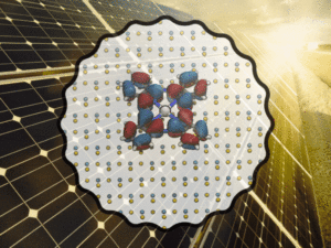 During optical excitation of a dye molecule attached to the surface of a semiconductor, significant charge transfer is imposed to improve electron/hole mobility in the solar cell. The animation highlights the change of electronic wavefunction obtained from quantum calculation of the involved energetic states.